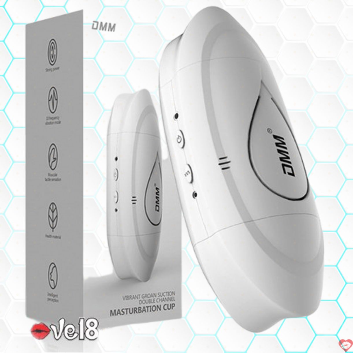 Cốc thủ dâm 2 đầu thông minh DMM Masturbation Cup thương hiệu có thể tạo lực co bóp bằng tay.