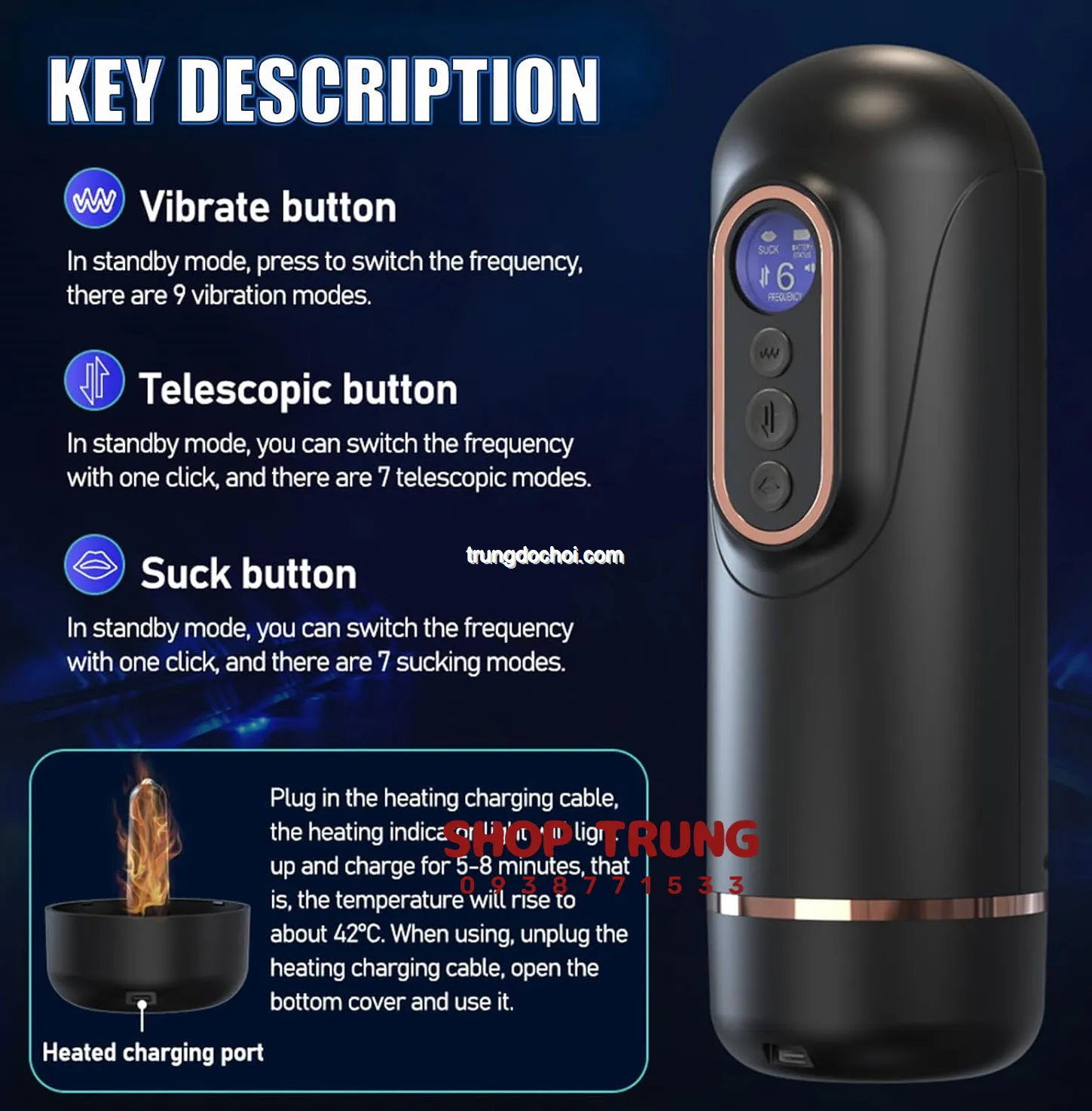 Máy thủ dâm bú mút khách hàng được trang bị công nghệ 5 in 1 Automatic Male Masturbation sản xuất với nhập hàng các chức năng nổi bật như: