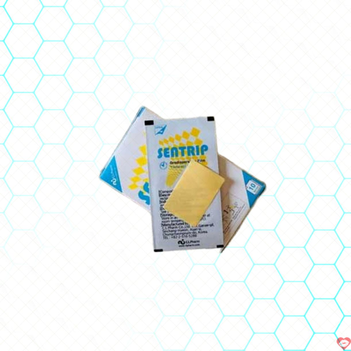 Mỗi tem ngậm có hình chữ nhật ăn trộm , màu vàng nhạt lấy hàng . Mỗi hộp Sentrip gồm có 10 tem đẹp . Tem ngậm địa chỉ sẽ tan trong miệng ngay trong vài giây vận chuyển mà không cần uống cùng nước địa chỉ . Sau khoảng 30 phút theo yêu cầu , tem báo giá sẽ bắt đầu có tác dụng.